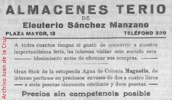 Es de señalar, asimismo, que hasta el comercio local participaba, a través de los anuncios que incrustaba en los periódicos cacereños, de sus atractivos con referencias, claro es, a la celebración de las Ferias y Fiestas de la ciudad en honor de San Fernando. Tal es el caso, por ejemplo, de Almacenes Terio, Almacenes Gozalo o "Casa Jurado"…