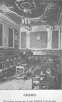 Cafés que se deslizan por la historia de Cáceres y como escenario humano en el perfil de la vida de la ciudad, por los que pasaban, también, esa serie de personajes que llegaban para unas actuaciones teatrales, taurinas, de obligaciones militares, para unas operaciones comerciales, participar en unas cacerías, ofrecer unos recitales, participar en unas cacerías…