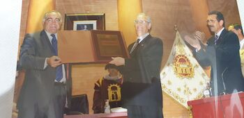 Foto.-Domingo Bailón recibe el título de Hijo Adoptivo de Mérida de manos del alcalde, Pedro Acedo.