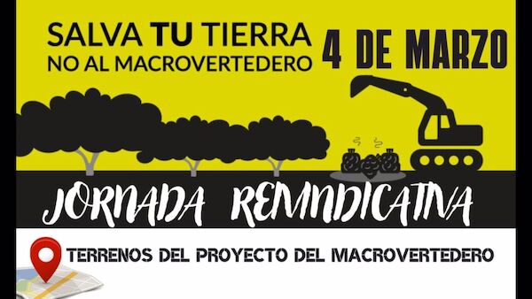 La Plataforma Salva tu Tierra celebrará este sábado, 4 de marzo, una jornada reivindicativa en contra el macrovertedero en Salvatierra de los Barros (Badajoz).