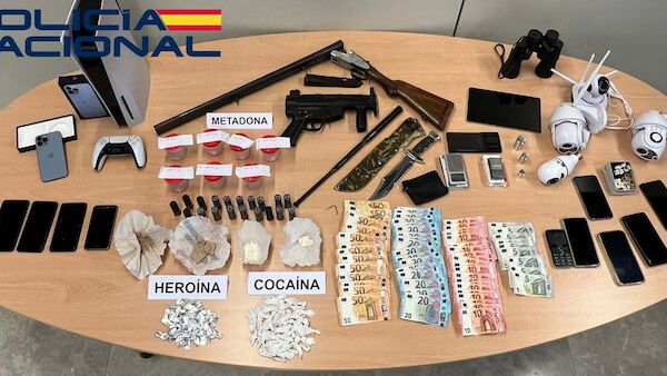 Así pues, con la preceptiva autorización, el pasado 11 de mayo se procedió a las tres entradas y registros en las viviendas citadas, donde se intervinieron 75 gramos de cocaína, 75 gramos de heroína, 770 gramos de metadona, más de 1.200 euros en metálico, una escopeta de cartuchos con el número de serie manipulado, un subfusil de balines y un arma blanca de grandes dimensiones, según informa la Policía Nacional en una nota de prensa.