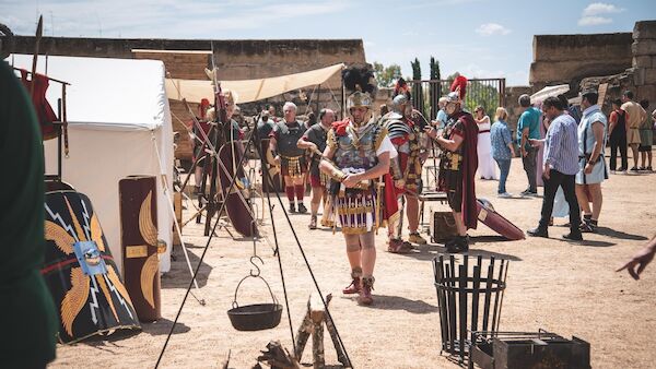 Por otro lado, este domingo la jornada comenzará con actividades de los castras de Méridas del Mundo y Alcazaba. A las 10,30 horas, comenzará el recorrido del Haspartum hacia el Acueducto de los Milagros donde, a las 11,00 horas, se exhibirá el considerado "primer juego de pelota de la historia", que se creó para mantener entrenados a los legionarios.