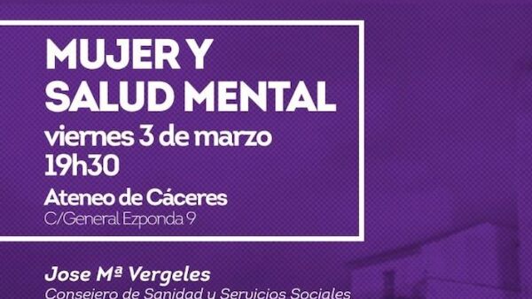 Así pues, las jornadas 'Mujer y salud mental' tendrán lugar este viernes, 3 de marzo, a las 19:30 horas, en el Ateneo de Cáceres, y estarán moderadas por el psiquiatra Ignacio Torres. Participarán el consejero de Sanidad y Servicios Sociales, José María Vergeles; la jefa de gestión de programas asistenciales del Sepad, Soraya Masa; la responsable técnica de Feafes Salud Mental Extremadura, Inmaculada Valero, y el candidato a la alcaldía de Cáceres, Luis Salaya.