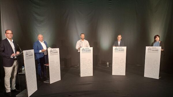 Los posibles pactos entre partidos para formar gobierno en el Ayuntamiento de Cáceres tras las elecciones municipales del próximo 28 de mayo, en caso de que ninguna formación consiga mayoría absoluta, la postura frente a la mina de litio en la Montaña o la retirada o permanencia de La Cruz, han centrado el debate entre los cinco candidatos de los partidos con representación en el consistorio cacereño (PSOE, PP, Cs, Unidas Podemos y Vox), que ha tenido lugar este viernes.