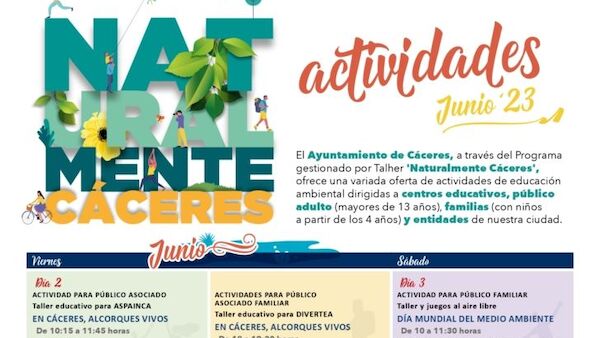 El Ayuntamiento de Cáceres, a través del programa de educación ambiental gestionado por Talher 'Naturalmente Cáceres', continúa sus actividades de educación ambiental en el mes de junio.
