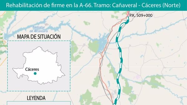 El Ministerio de Transportes, Movilidad y Agenda Urbana (Mitma) ha licitado, por un importe de 601.973 euros (IVA incluido), las obras de rehabilitación superficial del firme en la Autovía Ruta de la Plata A-66, entre los kilómetros (km) 509 y 545, en el tramo entre Cañaveral y Cáceres (Norte), en la provincia de Cáceres. En concreto, el anuncio de licitación será próximamente publicado en el Boletín Oficial del Estado (BOE).