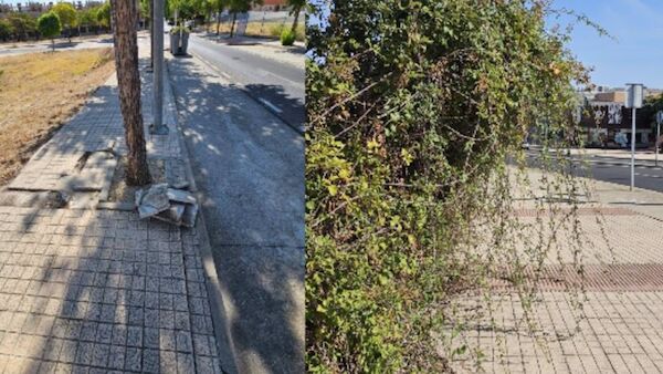 Además, ha criticado la situación de unos matorrales que hay en la rotonda de acceso al área comercial donde estas hierbas, "que tienen unos espinos que son auténticas cuchillas", ha dicho, han invadido la acera con el peligro que esto supone, ya que pueden provocar cortes "graves y serios".