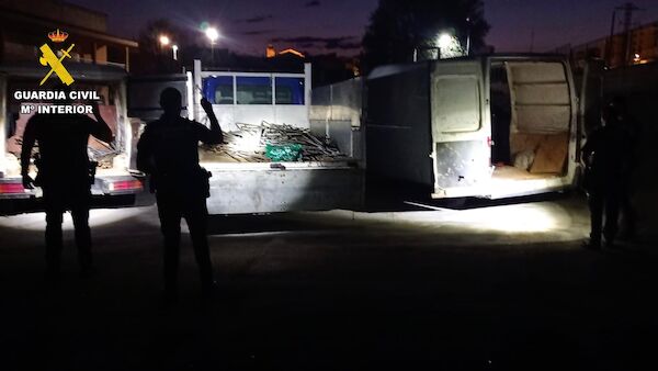 Entre los efectos sustraídos, y finalmente recuperados, se encuentran algo más de 4.000 kilogramos de materiales metálicos de la obra, cuya carga había sido repartida por los detenidos entre las tres furgonetas, según informa la Guardia Civil en una nota de prensa.