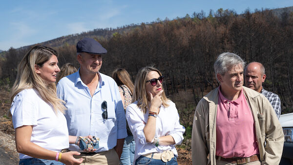 La presidenta de la Junta de Extremadura, María Guardiola, ha visitado junto a la consejera de Gestión Forestal y Mundo Rural, Camino Limia, los trabajos de recuperación de la zona afectada por el incendio de Las Hurdes y Gata del pasado mes de mayo.