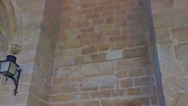 Inscripción 'José Antonio' concatedral Cáceres, pendiente aún de informes para su retirada