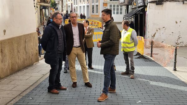El alcalde de Cáceres, Rafael Mateos, y el concejal de Infraestructuras, Víctor Bazo, han visitado la finalización de las obras de peatonalización en las calles Parras y San Antón.