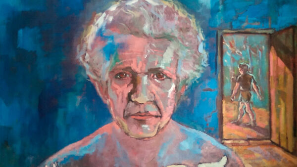 Representa el óleo en cerámica que Antonio Vaquero Poblador pintó y donó a su amigo, albacea del espíritu de Manuel Pacheco, Antonio Viudas Camarasa.