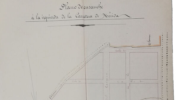 Así pues, este documento expuesto se corresponde con el primer plano que existe sobre el futuro ensanche de la ciudad, que pretendía comunicar el centro histórico con la nueva estación de ferrocarril, inaugurada solo un año antes, en 1881.