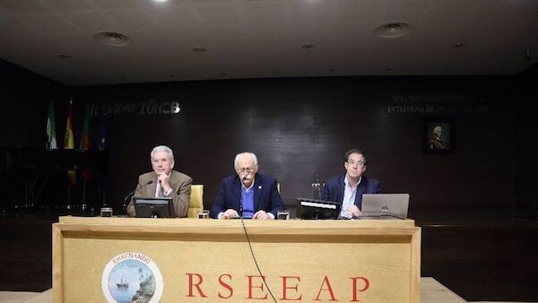 La firma se ha celebrado en la Real Sociedad Económica Extremeña de Amigos del País, con la presencia de los hijos del pintor, José María y Francisco Pedraja, el presidente de Fundación CB, Emilio Vázquez, y el presidente de dicha Real Sociedad, Emilio Cruz.