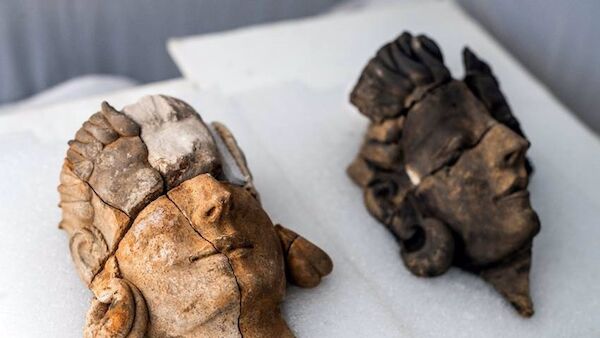 En concreto, el descubrimiento se ha realizado durante la excavación del sector Este del yacimiento, el área por el que se accede al patio del edificio donde se documentó un masivo sacrificio de animales, principalmente caballos, y lo "insólito" del nuevo hallazgo es que las representaciones corresponden a rostros humanos.