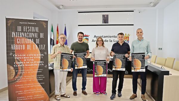 El certamen ha sido presentado, en el consistorio arroyano, con la presencia del alcalde de la localidad, Carlos Caro; la concejala de Educación, Mercedes Pérez; el director del festival, Jacinto Sánchez; el profesor del Conservatorio de Cáceres, Ignacio Garrido, y los guitarristas, Isabel Mendo y Javier Lucío.