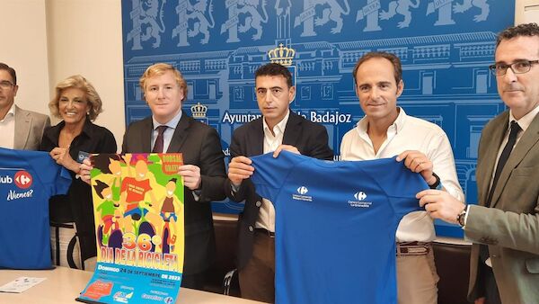 El Día de la Bicicleta ha sido presentado en la mañana de este lunes por el alcalde de Badajoz, Ignacio Gragera, acompañado del concejal de Deportes, Juan Parejo; la presidenta del Banco de Alimentos de Badajoz, Cristina Herrera; y los directores de los dos Carrefour de Badajoz, Francisco Carmona y Víctor López.