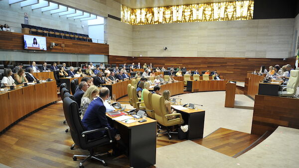 Finalmente, tras la toma de posesión, la presidenta de la Asamblea de Extremadura, Blanca Martín, les ha dado la bienvenida a los cinco nuevos diputados a la Cámara regional.
