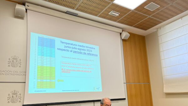 Finalmente, de cara a los meses de septiembre, octubre y noviembre de 2023 en Extremadura, Núñez ha adelantado que hay una probabilidad moderada de que las temperaturas sean superiores a los valores medios del periodo de referencia 1981-2020.