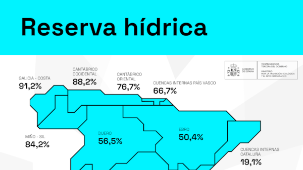 A su vez, en el conjunto del país, los embalses han recogido esta semana un total de 1.035 hectómetros cúbicos de agua, lo que representa un 1,8 por ciento, y que elevan la reserva de agua hasta el 43,6 por ciento de su capacidad total, según datos del Ministerio para la Transición Ecológica y Reto Demográfico.