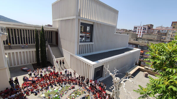 Así pues, la acción, titulada 'Construyendo la ciudad sostenible', ha contado con la participación de los alumnos, alumnas y el profesorado quienes han ocupado los jardines del Museo portando los diferentes elementos urbanos con los que construir su instalación.