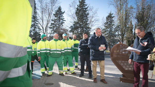El alcalde, Antonio Rodríguez Osuna, y la delegada de Parques y Jardines, Mercedes Carmona, han recepcionado este corazón solidario que se encuentra ubicado en la puerta de las instalaciones del servicio de Parques y Jardines, sita en la Avenida Felipe Corchero.