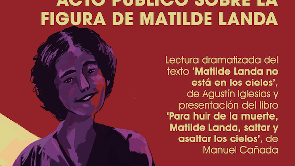 La cita comenzará con la lectura dramatizada 'Matilde Landa no está en los cielos', a cargo de la compañía extremeña Guirigai y continuará con la presentación del libro 'Para huir de la muerte, Matilde Landa, saltar y asaltar los cielos', de Manuel Cañada, en donde el autor acercará a los asistentes la vida y lucha "de esta mujer increíble", desde su perspectiva de activista, de persona comprometida con la clase trabajadora.