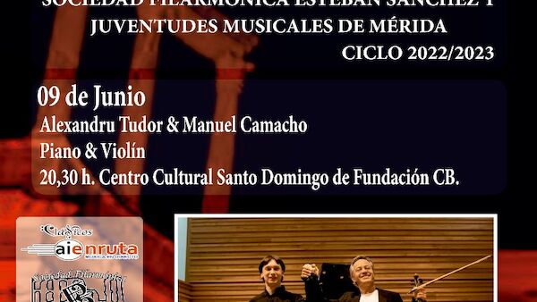 El próximo 9 de junio, a las 20:30 horas, se celebrará en el Centro Cultural "Santo Domingo" de Fundación CB, en Mérida, un concierto de música clásica protagonizado por Alexandru Tudor (piano) y Manuel Camacho (violín).