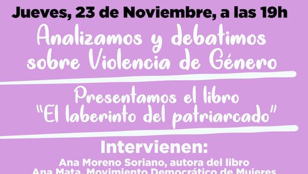 El evento será la presentación del libro "El laberinto del patriarcado" de Ana Moreno Soriano, donde la autora explicará como el feminismo trata de poner la vida en el centro y en común, de elaborar alternativas que frenen y acaben con las consecuencias nefastas de este sistema y analicen las causas; es por eso por lo que la lucha feminista tiene, como ha tenido siempre, un gran sentido político.