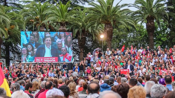 Ha apelado a la “estabilidad” que es “lo que necesita Extremadura” para seguir liderando la revolución industrial y generar riqueza y mantener nuestro estado del bienestar. Un discurso que antepone al programa del PP “cuyo único punto es la bajada de impuestos”, ha criticado. Pues “frente a eso nosotros vamos a bajar las ratios en las aulas, las listas de espera, las tasas de paro, el abandono escolar, la tasa de pobreza, la brecha salarial…” Entre aplausos ha expuesto que “esa es la diferencia entre la derecha y nosotros; unos restan y otros sumamos”.