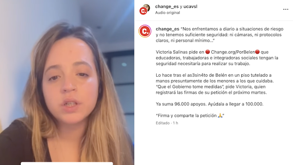 Además, la de Victoria no es la única petición que se ha creado en Change.org en la última semana tras el asesinato de Belén Cortés. Al menos otras dos iniciativas más solicitan más medios para proteger a trabajadoras, educadoras e integradoras sociales.