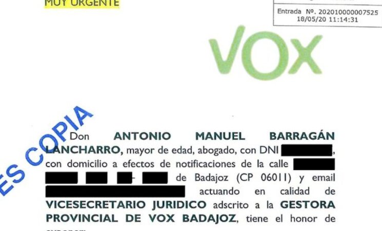 A su vez, en el escrito presentado por el vicesecretario jurídico de Vox en la provincia de Badajoz, Antonio Manuel Barragán Lancharro, también se informa de que las cucarachas "han invadido viviendas particulares este fin de semana, obligando en algunos casos a los vecinos a abandonar sus viviendas", concluye.