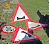 Señalización y barreras que se encontraban instaladas en los caminos rurales de Monesterio a Cala y en el que une la EX-308 con Real de la Jara (Sevilla).