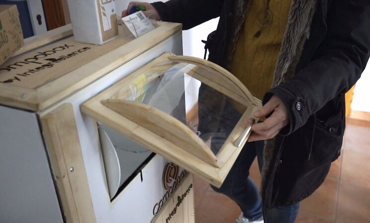 Cuando la bolsa esté llena, se arroja en un contenedor inteligente llamado 'Compobox' y ubicado en un punto céntrico del pueblo. Este contenedor se encargará de ir preparando la materia orgánica para que, cuando toque recogerla, se pueda aplicar directamente como abono en zonas cercanas de la población.