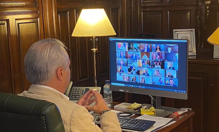 En concreto, la reunión ha tenido lugar mediante videoconferencia con el conjunto de los alcaldes de Alicante, Almería, Badajoz, Badalona, Barcelona, Cádiz, Córdoba, Granada, Lleida, Madrid, Málaga, Marbella, Murcia, Ourense, Oviedo, Palencia, Pamplona, Pontevedra, Pozuelo de Alarcón, Reus, Salamanca, Santander, Santa Cruz de Tenerife, Tarragona, Telde, Terrasa, Teruel, Torrelavega, Valencia y Zaragoza.