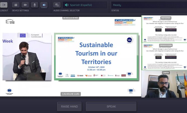 El diputado de Transformación Digital y Turismo de la Diputación de Badajoz, Manuel José González Andrade, ha participado en el taller virtual “Turismo Sostenible en Nuestros Territorios”, incluido en la celebración de la décimo octava Semana Europea de las Ciudades y las Regiones y coorganizado por el Comité de las Regiones y la Dirección General REGIO de la Comisión Europea.