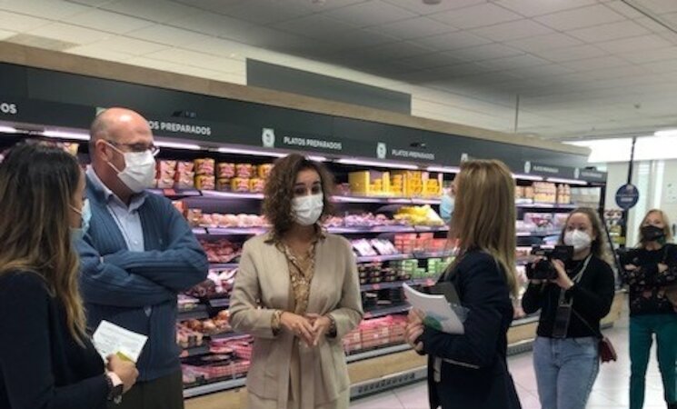 La consejera para la Transición Ecológica y Sostenibilidad, Olga García, ha visitado la tienda Mercadona, ubicada en la calle Mayor Zaragoza de Badajoz, una de las dos Tiendas 6.25 que la firma tiene implantadas en Extremadura.