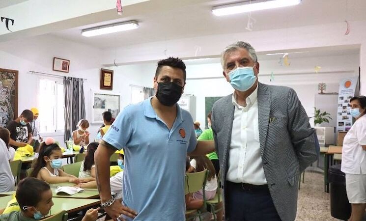 El director de Fundación CB, Emilio Jiménez, ha visitado este lunes a los niños en la sede del comedor, aprovechando la ocasión para hacerles entrega de unos detalles para el verano.