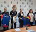 El secretario general de la Jefatura, Fernando Rodríguez; el jefe del Gabinete de Prensa, Francisco Mendiola, y los portavoces Raúl González y María de los Ángeles Jiménez, han presentado la V Carrera Solidaria 'Ruta 091 Badajoz', en la Jefatura Superior de Policía de Extremadura, acompañados de representantes de la asociación beneficiaria del evento.
