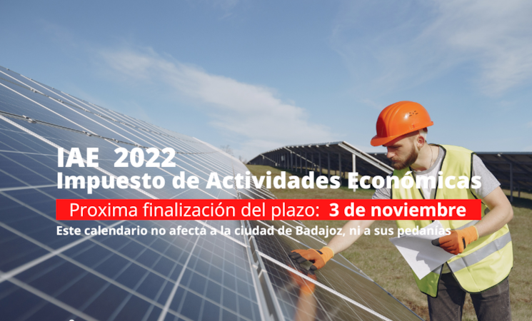 Las empresas de la provincia pacense, excepto las que realicen su actividad en la ciudad de Badajoz y sus pedanías, tienen hasta el próximo jueves 3 de noviembre para abonar el Impuesto de Actividades Económicas (IAE), estando obligadas al pago aquellas empresas cuyo importe neto de cifra de negocios sea igual o superior a 1.000.000 de euros.