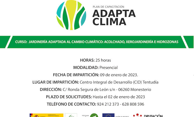 La Diputación de Badajoz, a través del proyecto Adapta Clima, desarrollado por el Servicio de ODS, Alianzas y Proyectos del Área de Desarrollo Rural y Sostenibilidad de la Diputación de Badajoz, va a iniciar dos acciones formativas durante el mes de enero sobre 'Jardinería adaptada al cambio climático: acolchado, xerojardinería e hidrozonas', relacionado con el empleo que genera la adaptación y mitigación del cambio climático.