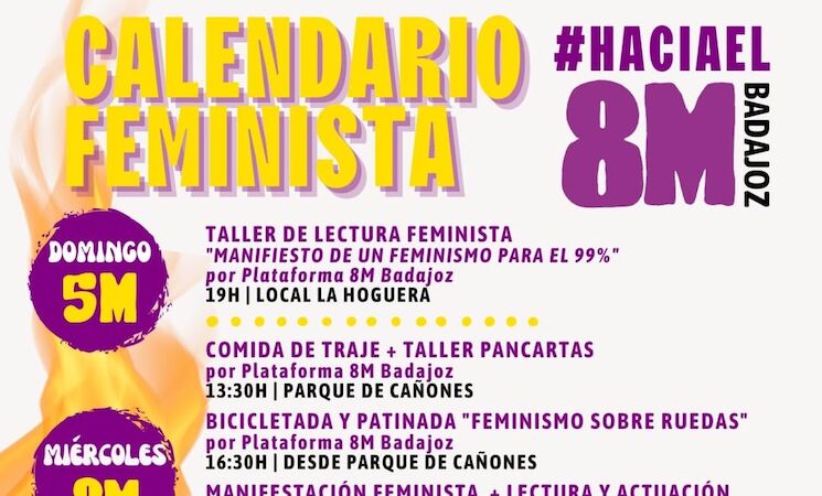 La Plataforma 8M de Badajoz ha destacado que las actividades propuestas para este año tendrán lugar no sólo el mismo 8 de marzo, dado que también se extenderán a los días anteriores y siguientes.