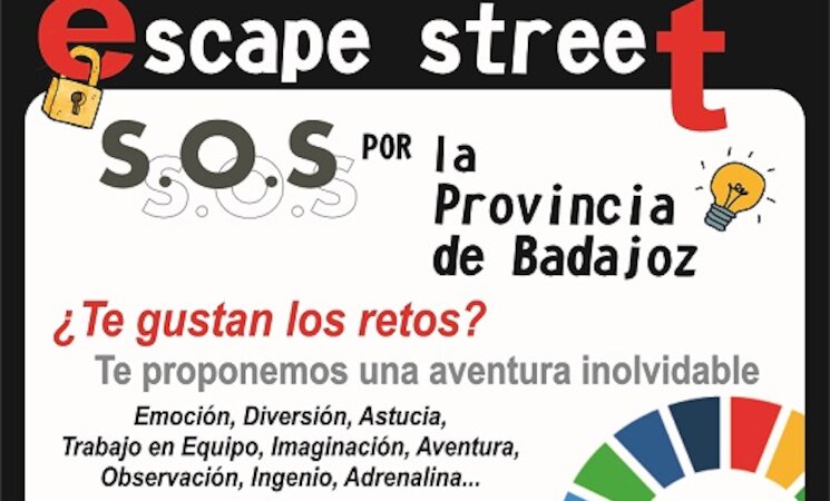 La Diputación de Badajoz, siguiendo su compromiso con los Objetivos de Desarrollo Sostenible de la Agenda 2030 de Naciones Unidas, comenzará a desarrollar, a partir del 23 de marzo, el proyecto ‘Escape Street: S.O.S. por la provincia de Badajoz’ en 14 municipios.