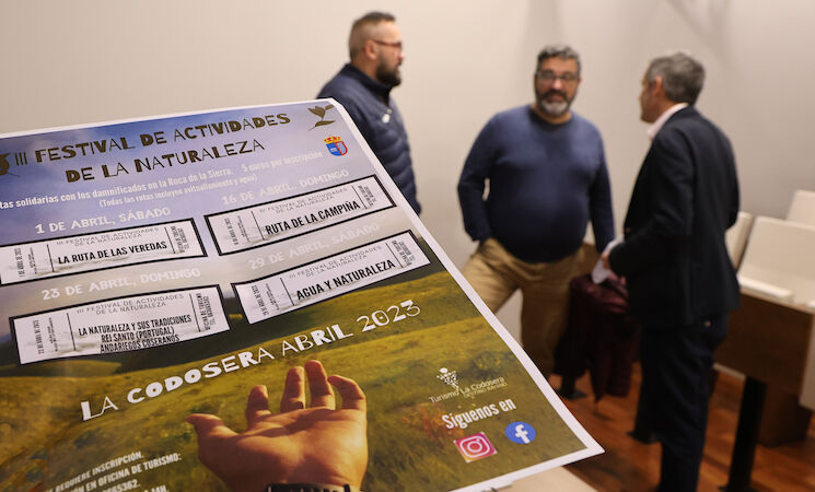 El diputado provincial Abel González ha acompañado a Juan Ángel Martínez Vaz, concejal de Cultura del Ayuntamiento de La Codosera, y Francisco C. Rodríguez Cuesta, técnico de la Oficina de Turismo, en la presentación de esta tercera edición.