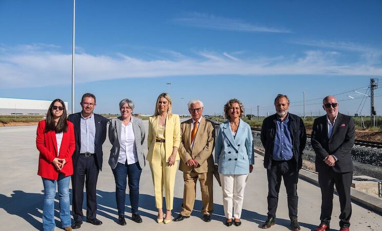 El consejero de Economía, Ciencia y Agenda Digital, Rafael España, y la consejera de Movilidad, Transporte y Vivienda, Leire Iglesias, han recibido este miércoles a la ministra de Cohesión Territorial de Portugal, Ana Abrunhosa, en la terminal ferroviaria de la Plataforma Logística de Suroeste Europeo en Badajoz.