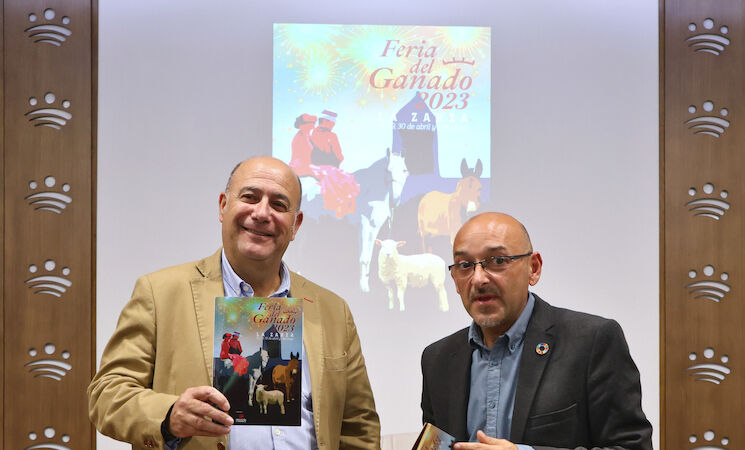 El diputado delegado del Área de Desarrollo Rural y Sostenibilidad de Diputación de Badajoz, Lorenzo Molina, y el diputado delegado del Área de Fomento y alcalde de La Zarza, Francisco Farrona, han presentado la 68ª edición de la Feria del Ganado de la Zarza, que se desarrollará en el municipio desde el 28 de abril hasta el 1 de mayo.