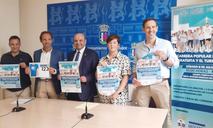 La Carrera popular por la justicia gratuita y el turno de oficio ha sido presentada en el Ayuntamiento de Badajoz en una rueda de prensa que ha contado con la presencia del concejal de Deportes, Juan Parejo, quien ha explicado que se trata de un recorrido "asequible" de 5 kilómetros que se completa con carrera infantiles y cuya organización corre a cargo del Colegio de Abogados con David Pozas, de la empresa deportiva Pulsaciones.net, como director técnico.