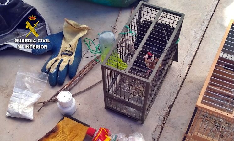Así pues, tras ser identificado, los agentes comprobaron que portaba dos jaulas con jilgueros machos que podría estar utilizando como reclamo para atraer otras aves de su misma especie y, una vez se inspeccionaron sus pertenencias, se le intervino pegamento, varillas, harina y aceite, así como un bolso con cinco jilgueros vivos que aún tenían restos de adhesivo en su plumaje.