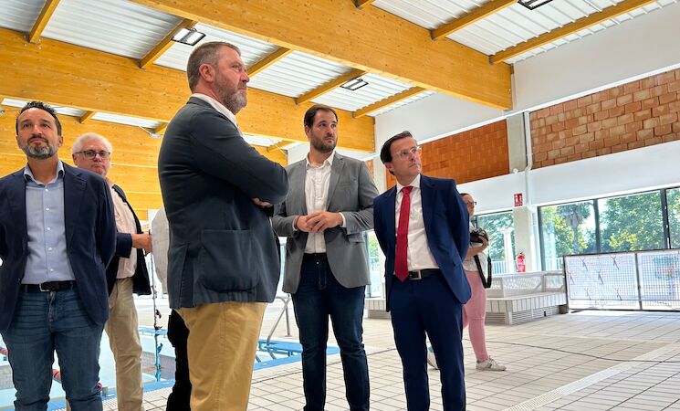 El presidente de la Diputación de Badajoz, Miguel Ángel Gallardo, ha visitado la piscina climatizada de Montijo, una vez concluidas las obras para la mejora de su eficiencia energética.