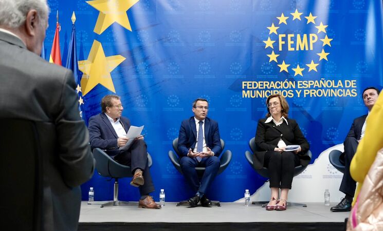 El evento se ha celebrado en la sede de la Federación Española de Municipios y Provincias (FEMP), y en la mesa también han participado la presidenta de la Diputación de Palencia, Mari Ángeles Armisén, y el presidente de la Diputación de Almería, Javier Aureliano García, que han dado a conocer otras iniciativas puestas en marcha en su territorio para evitar la exclusión.
